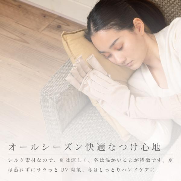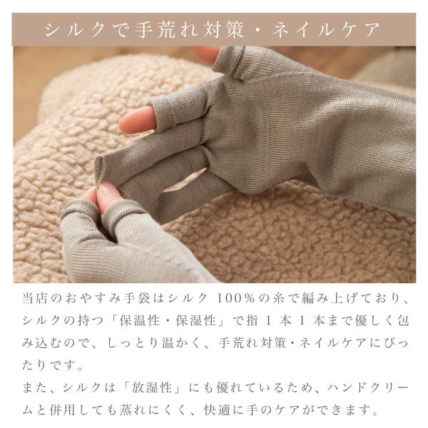 シルク おやすみ 手袋 日本製 シルク100%糸 レディース 寝る時 就寝時 UV 紫外線対策 日焼け対策 事務 運転 蒸れにくい 指なし 安心安全 日本製