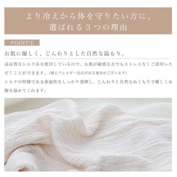 リッチで柔らかな肌触り、シルク100%の贅沢な腹巻き。