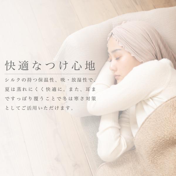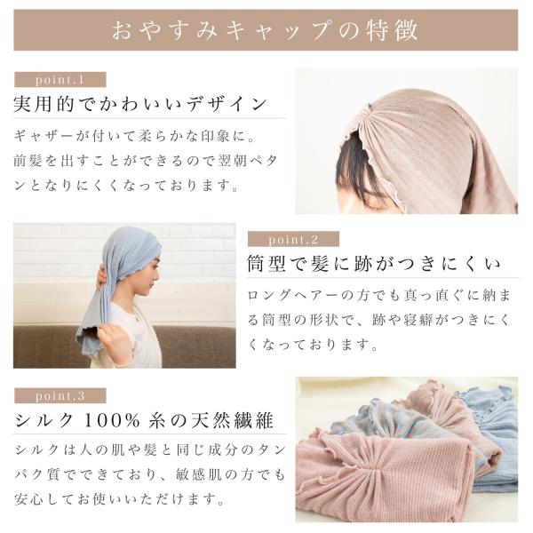 おやすみキャップ ショートサイズ ギャザー おしゃれ かわいい シルク ナイトキャップ 絹 保湿 筒