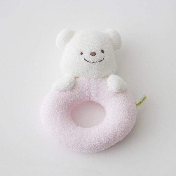 ハンドタオル・ウォッシュタオル・スナップスタイ・小物入れS(シャーリング地/綿100%)/ガラガラ(パイル生地:綿100%・中綿:ポリエステル100%・鈴:スチロール100%)