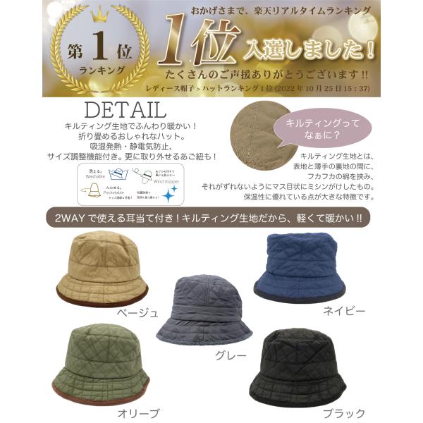 耳当て付き帽子 帽子 レディース uv 大きいサイズ 耳当付ニット帽 あったか帽子 暖か 冬 あごひも付 サイズ調整 小顔 すっぴん隠し キルティングクロッシェ
