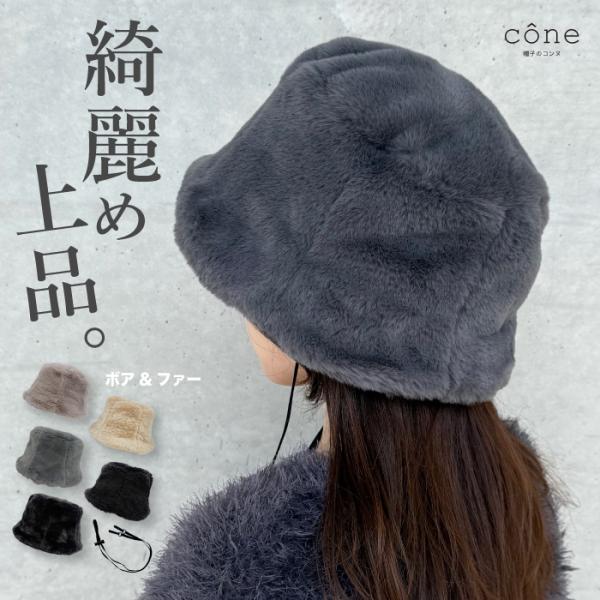 帽子 レディース 大きいサイズ バケットハット AW バケハ UVカット 冬 秋冬 防寒 暖か 耳 防寒対策 小顔 あごひも付 サイズ調整 ボアファーバケットハット