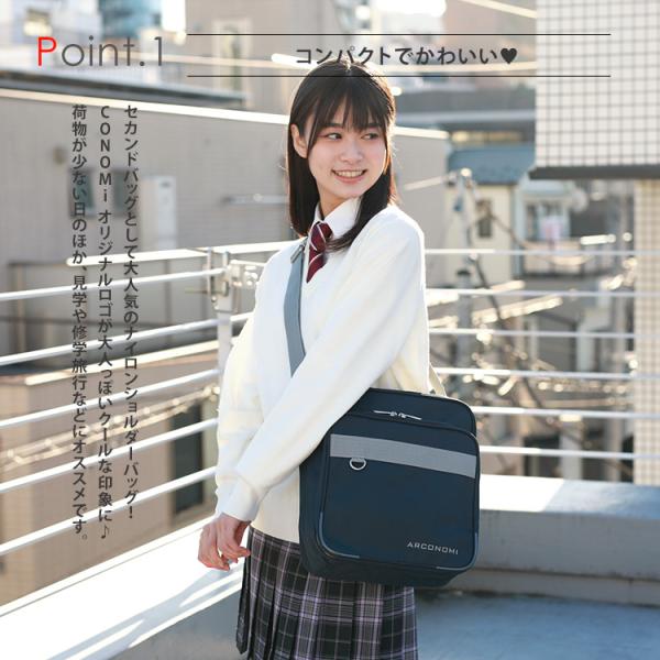 スクール バッグ ショルダー バッグ スクバ CONOMi 横浜型ショルダーバッグ ナイロン 女子 男子 高校生 学生 中学 横高 学校 スクールバッグ ネイビー 紺