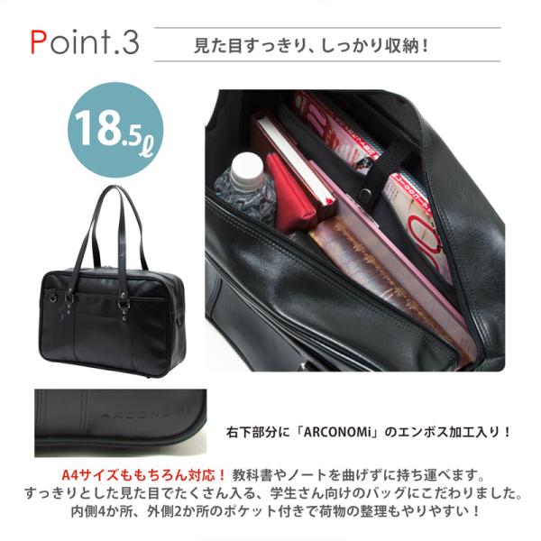 スクール バッグ 合皮 スクバ 雨に強い CONOMi 革 高校生 学生 学校 ブラック 黒 ユニセックス 大きめ シンプル メンズ 男子
