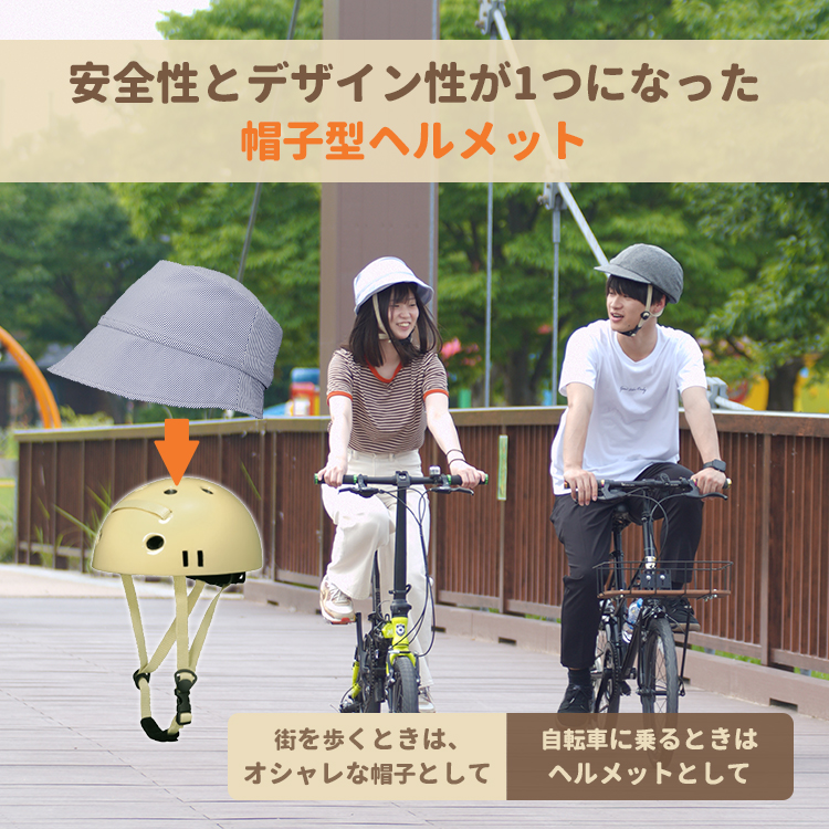 また、街を歩くときは、オシャレな帽子として自転車に乗るときは安全で快適なヘルメットとして使用できます。