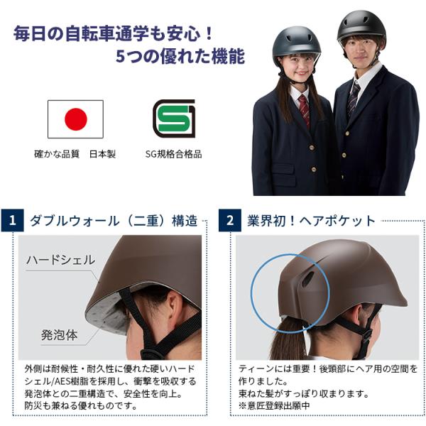 SG規格合格品・日本製の品質の高さで、毎日の自転車通学に安心をプラス。