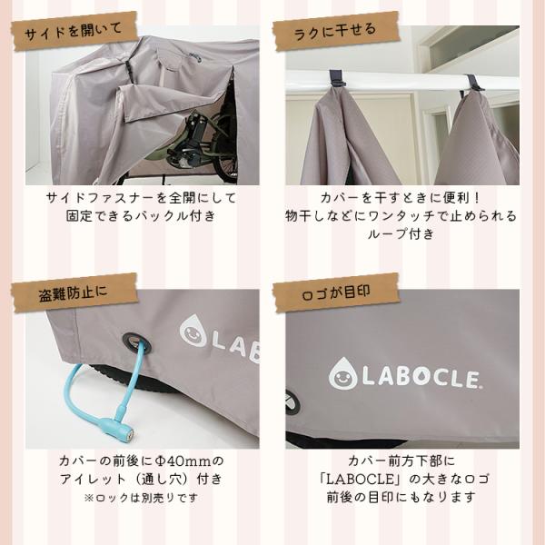 LABOCLE ラボクル 自転車カバー サイクルカバー L-BCD01 前後チャイルドシート対応 厚手 撥水 おしゃれ
