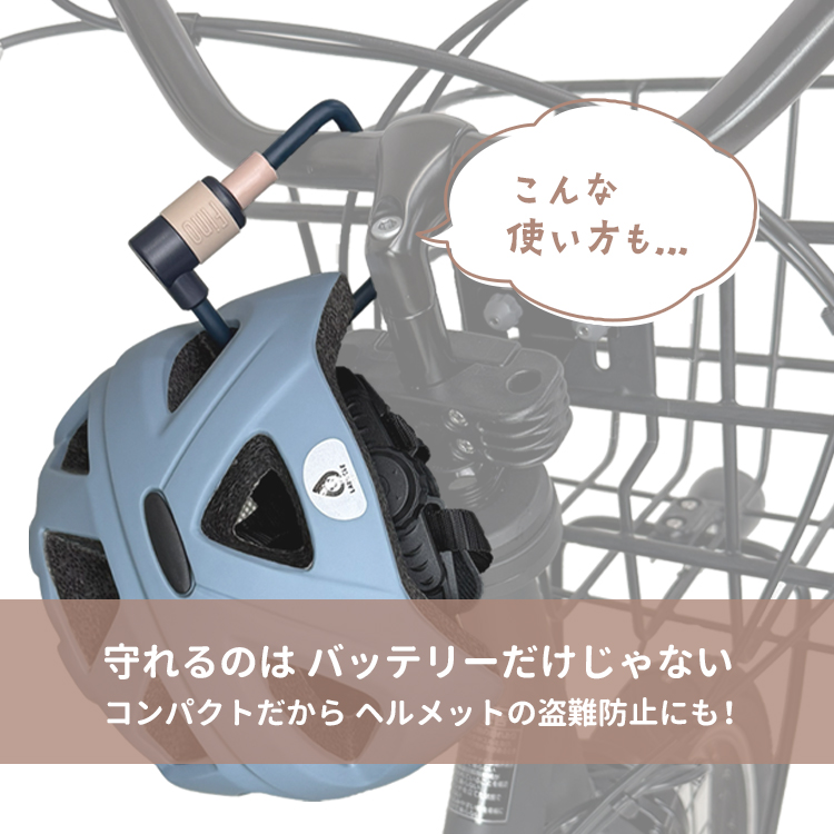 走行を妨げない最小サイズ設計の、電動自転車バッテリー専用ワイヤーロック。