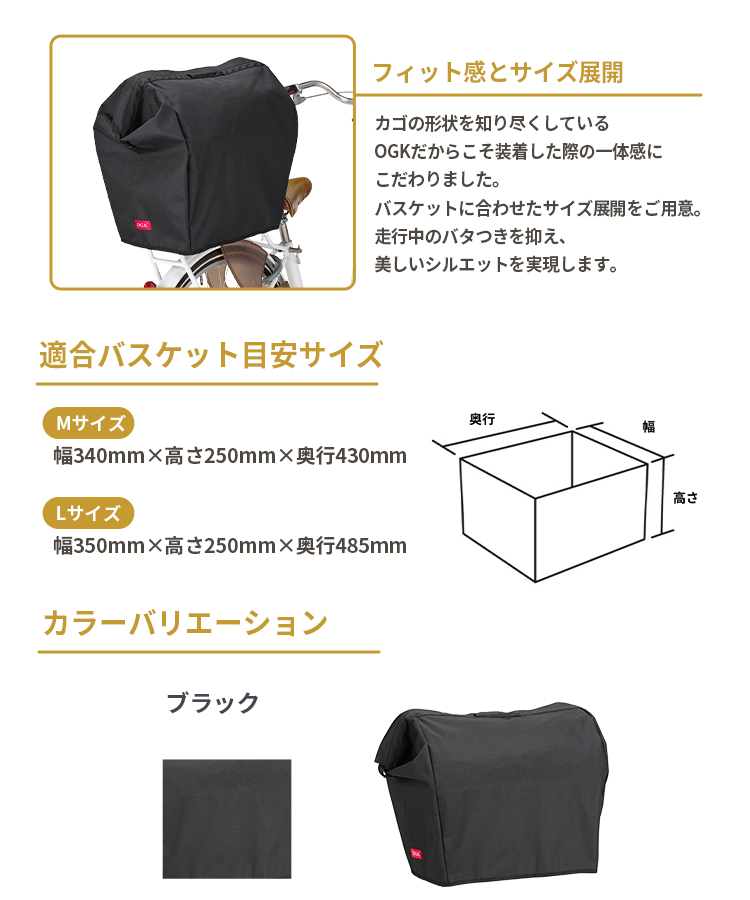 OGK製の人気バスケットに幅広く対応する、純正バスケットカバーシリーズ