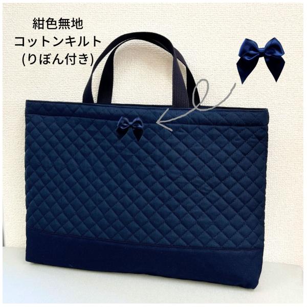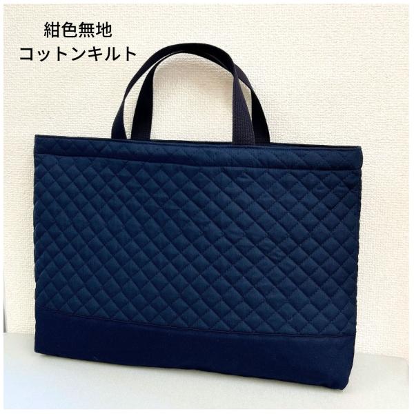 レッスンバッグ 無地 キルティング 切り替え 紺色 男の子 女の子 シンプル A4 B4 お受験 面接 手提げカバン 保育園 幼稚園 小学校 説明会 習い事 小学生子供