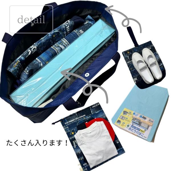 うれしい撥水加工、ポケット、お名前タグ付き。園から持ち帰る絵本を入れたり、小学校では図工や音楽の教室への移動時に使ったり。