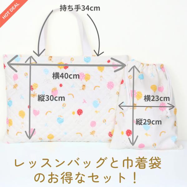 レッスンバッグ 巾着袋 2点セット キルティング 手提げバッグ 男の子 女の子 A4 B4 保育園 幼稚園 小学校 手提げかばん 日本製 30 40