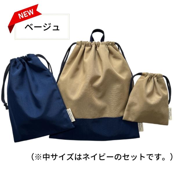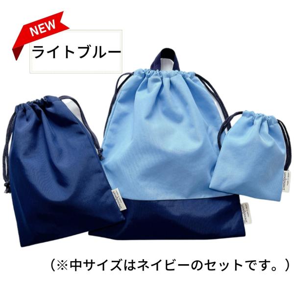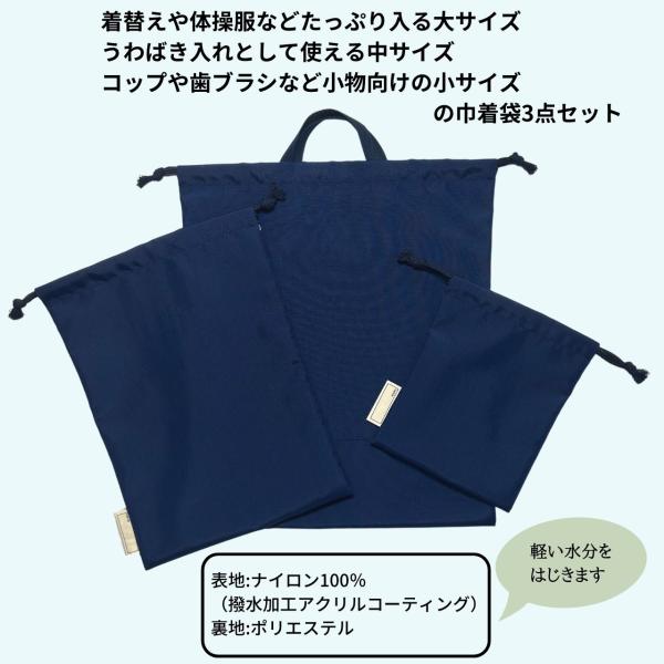 巾着袋 セット 防水 無地 3点 大 中 小 撥水 ナイロン 子供 日本製 ネイビー 体操着 上履き入れ コップ入れ 靴袋 幼稚園 小学校 保育園 大きめ 大人