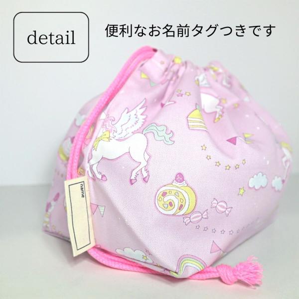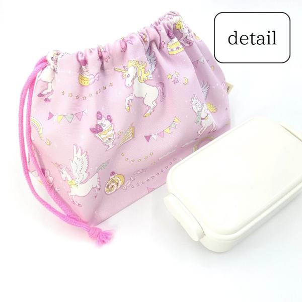 巾着袋 お弁当袋 おしゃれ 女の子 ユニコーン マカロン 給食袋 保育園 幼稚園 小学校 かわいい 布製 綿 子供