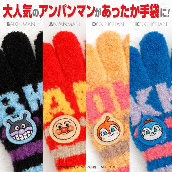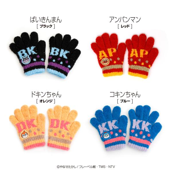 「大人気のアンパンと愉快な仲間たちが暖かいニット手袋に♪ トドラーサイズ(3〜4才頃) 全4色 日本製」