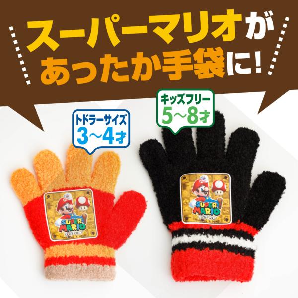 スーパーマリオ 手袋 キッズ トドラー 3才 4才 5才 6才 7才 8才 日本製 男の子 女の子 任天堂 冬 5本指 指あり 冬 送料無料