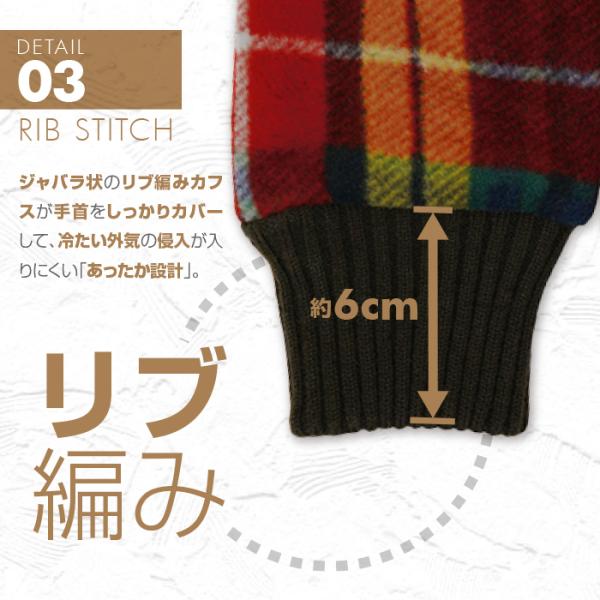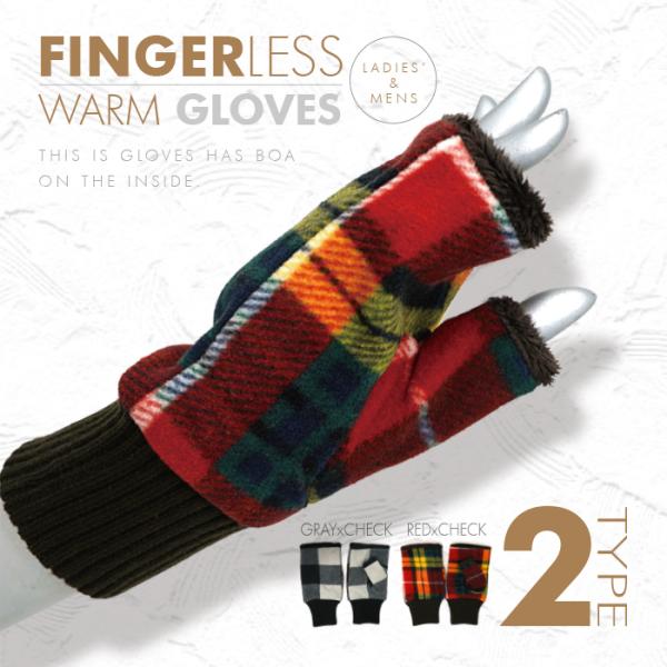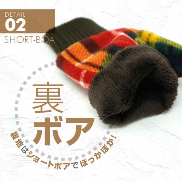 「裏地ボア指なし手袋 リブ編みカフス タータンチェック ブロックチェック 2タイプ」