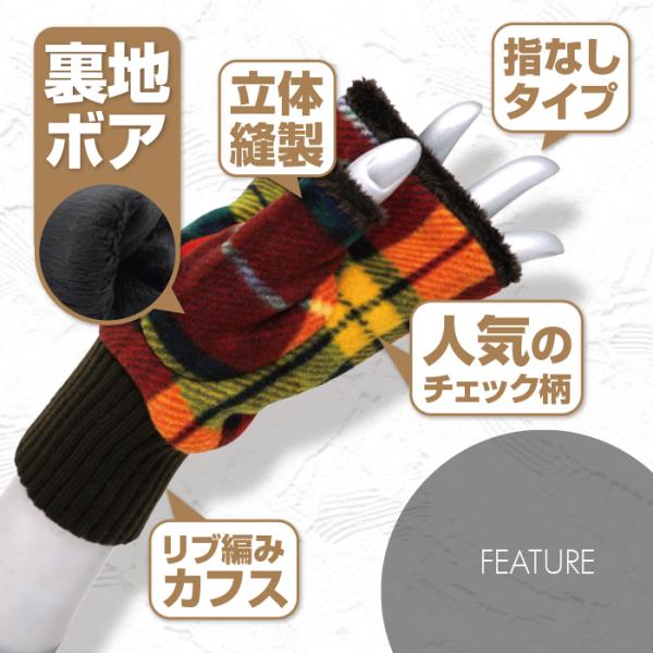 レディース 手袋 チェック 暖かい スマホ ボア 指なし