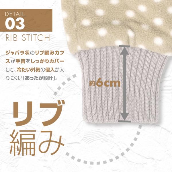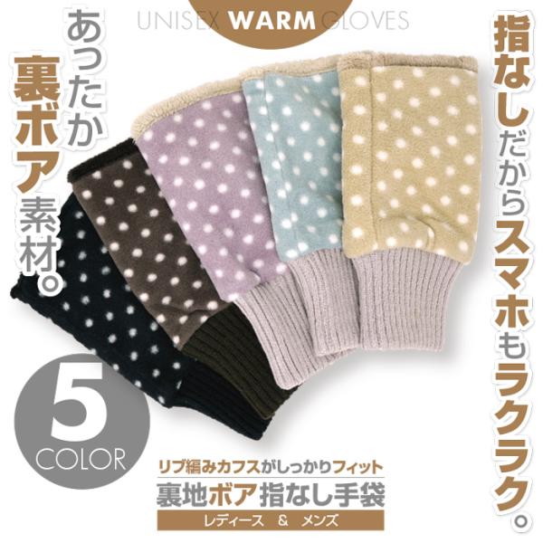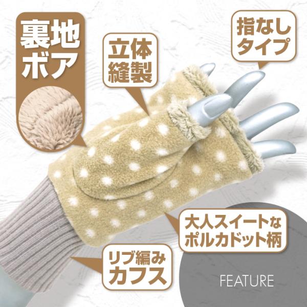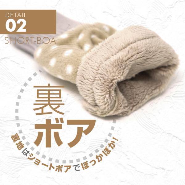 「裏地ボア指なし手袋 リブ編みカフス ポルカドット柄 全5色」