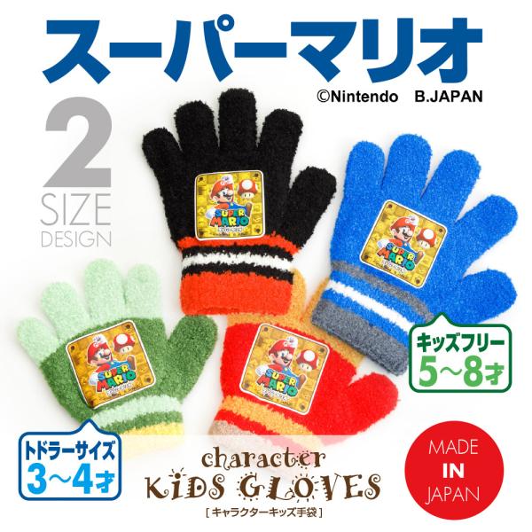 スーパーマリオ 手袋 キッズ トドラー 3才 4才 5才 6才 7才 8才 日本製 男の子 女の子 任天堂 冬 5本指 指あり 冬 送料無料