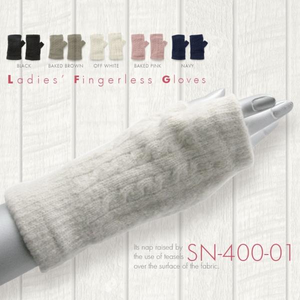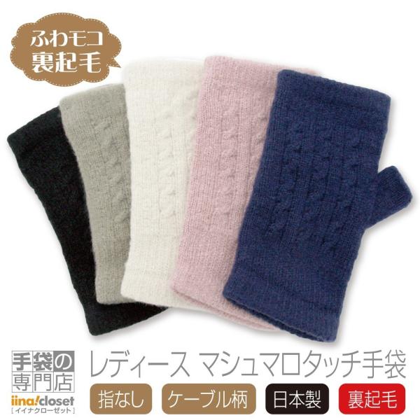 「レディース裏起毛指なし手袋 リブ編みカフス ケーブル編み柄 全5色」