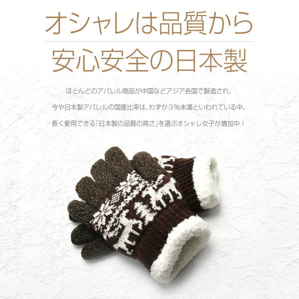 【クーポン利用で100円OFF!】 手袋 レディース 冬 暖かい おしゃれ スマホ対応 ボア ニット 2重構造 ノルディック 雪 日本製 プレゼント ギフト