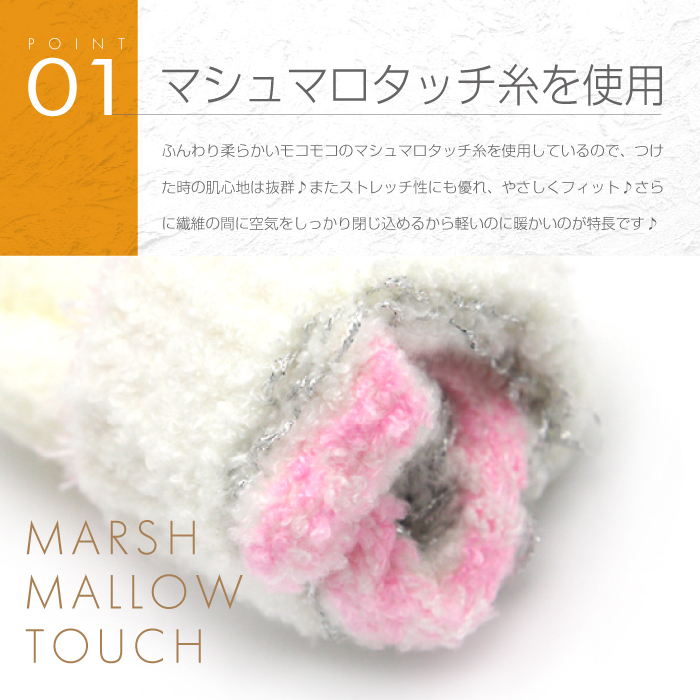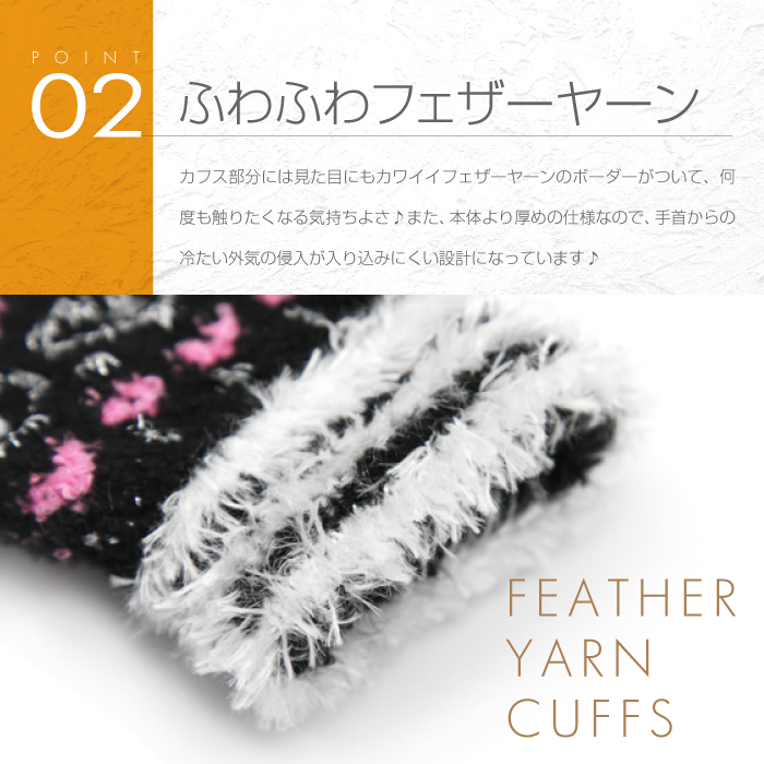 圧倒的に軽くて柔らかい「マシュマロタッチ糸」を使用したふわふわキッズ手袋♪カワイイだけでなく肌心地も抜群♪カフス部分にはボーダー状のフェザーヤーン♪手首から冷気が侵入しにくい「保温設計」♪甲側のハート型ラインストーンが光に反射すると虹色に♪カラーは全4色♪品質の日本製。