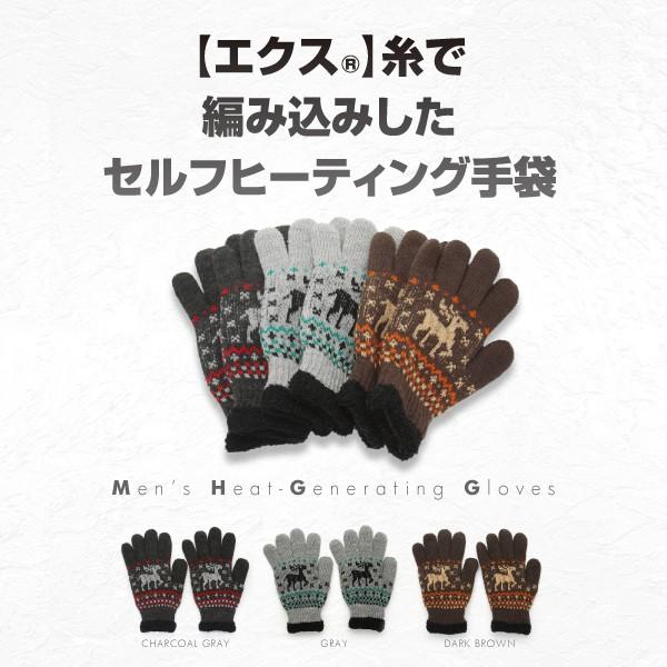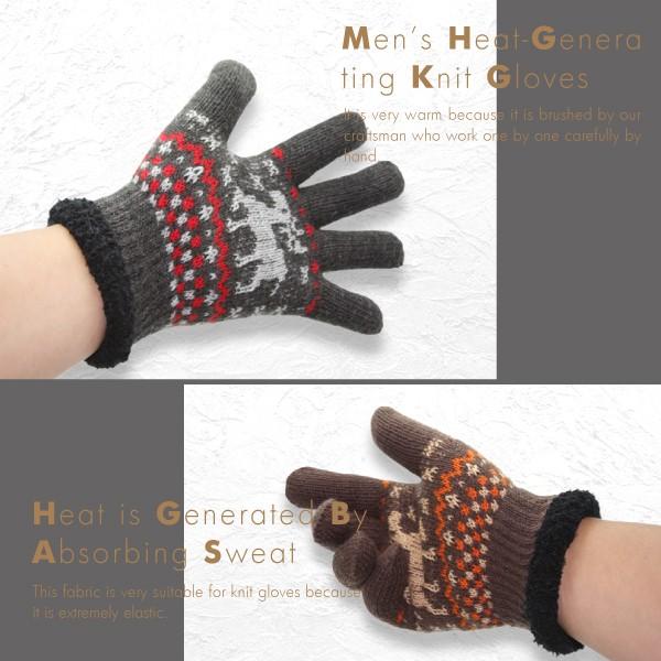 「手袋が発熱する♪メンズ セルフヒーティング手袋 裏地 吸湿発熱繊維 ノルディック柄(トナカイ) 日本製」