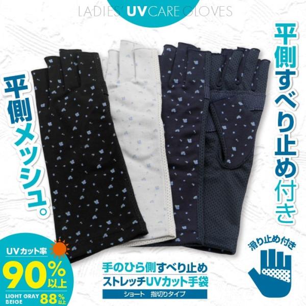 UVカット 手袋 ショート スマホ おしゃれ レディース 滑り止め 指なし 運転 指切り 春 夏 ストレッチ 紫外線 小花柄 日焼け プレゼント ギフト 送料無料