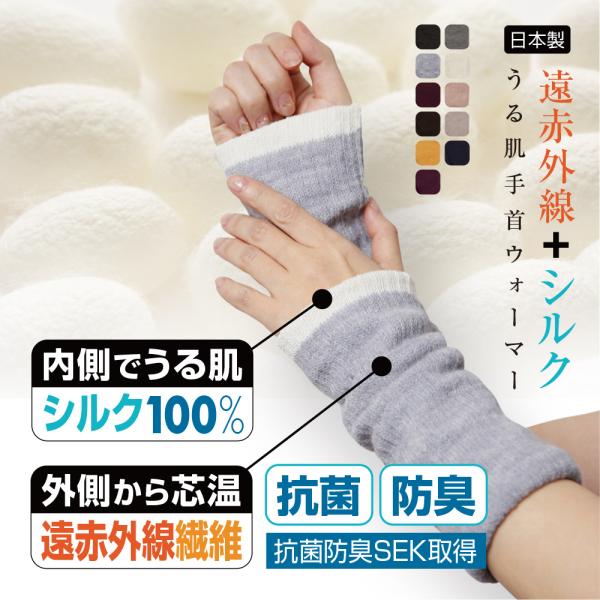 リストウォーマー ハンドウォーマー 手袋 リストバンド 冷え取り 肌面シルク100% レディース 遠赤外線 手首 保湿 潤い 指出し 指なし 事務 プレゼント 送料無料
