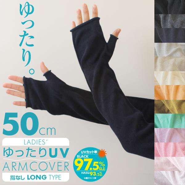 高級綿コーマ糸の肌心地♪ アームカバー UVカット率97.5%以上(ブラック) uv レディース ゆったり ロング 指なし 夏 50cm 日本製 手袋 スマホ おしゃれ 冷房対策
