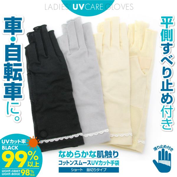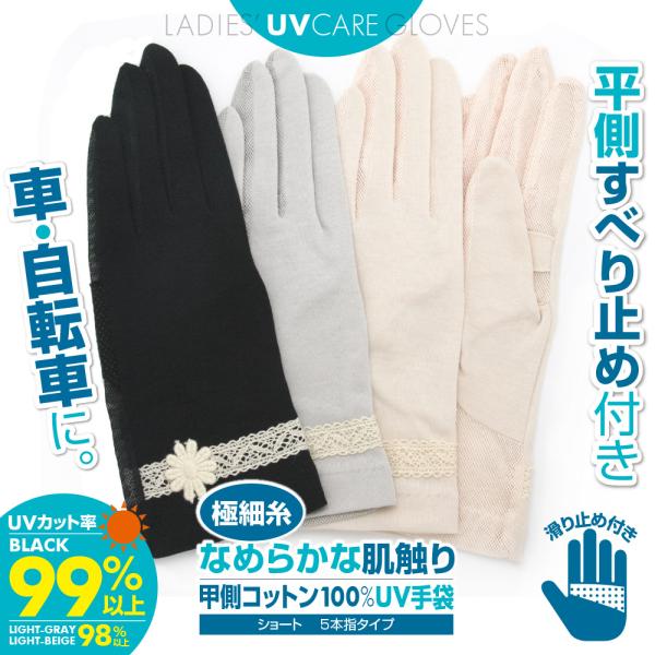 UVカット率99%以上(ブラック) uv 手袋 綿100% ショート レディース 運転 指あり 滑り止め アームカバー おしゃれ コットン 夏 日焼け