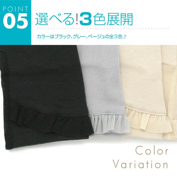 「レディース 甲側コットン100%平側メッシュ フリル装飾UVカット手袋 ショート 滑り止め付き 指切りタイプ 全3色」