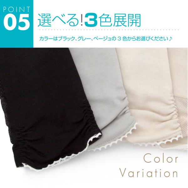 「レディース 甲側コットン100%平側メッシュ 裾口レース付きUVカット手袋 ショート すべり止め付き 5本指タイプ 全3色」