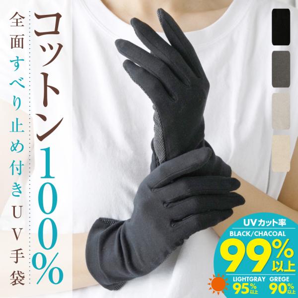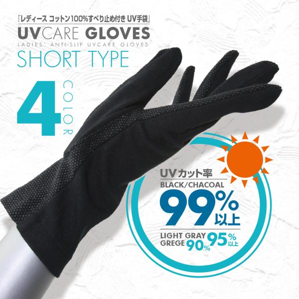 UVカット率99%以上(ブラック) uv 手袋 綿100% ショート レディース 運転 指あり 滑り止め アームカバー おしゃれ コットン 夏 日焼け