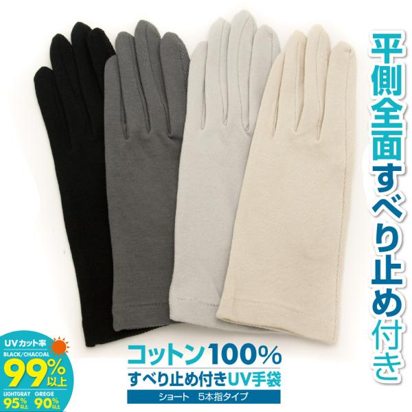 UVカット率99%以上(ブラック) uv 手袋 綿100% ショート レディース 運転 指あり 滑り止め アームカバー おしゃれ コットン 夏 日焼け