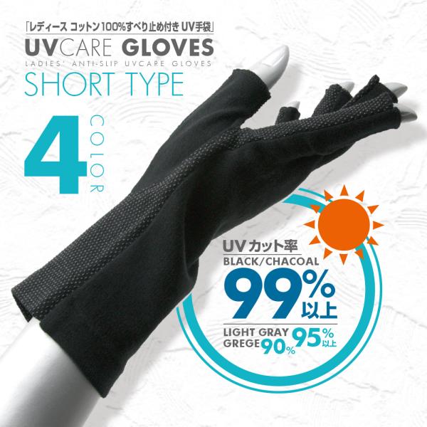UVカット率99%以上(ブラック) UVカット 手袋 ショート 指切り 指なし アームカバー スマホ 運転 おしゃれ 綿100% 滑り止め 夏 日焼け
