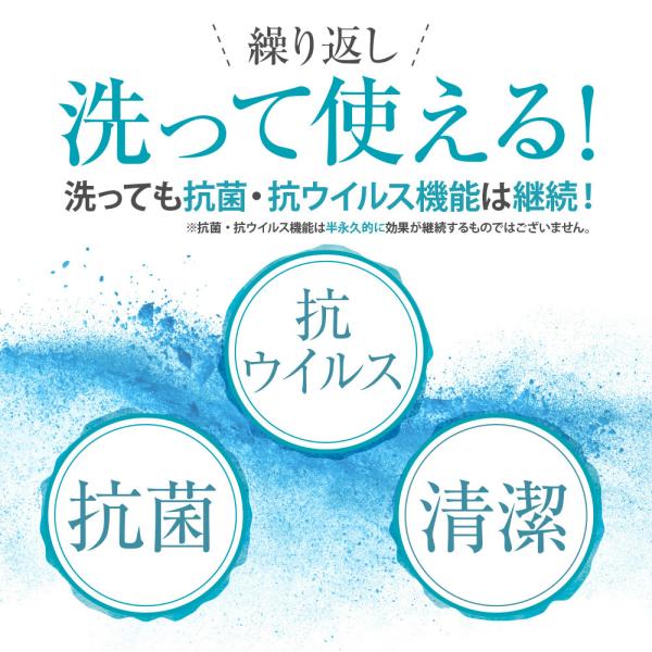 表地は、抗菌・抗ウイルス機能繊維加工技術「クレンゼ(R)」を使用。50回の洗濯を繰り返しても効果は衰えないことも確認。また裏地は、通気性、吸水性に優れ、肌にもやさしい綿100%。夏は涼しく、冬暖かい素材なので、通年でお使いいただけます。不織布マスクなどで肌荒れにお悩みの方におすすめのアイテムです。カラーはブラック、グレー、オフホワイト、ネイビーの全4色からお選びいただけます。