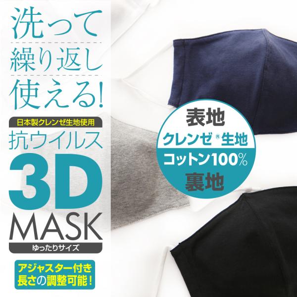 【クーポン利用で100円OFF!】 マスク 抗ウイルス 3枚セット クレンゼ 感染対策 日本製生地使用 洗える 布マスク 肌荒れ おしゃれ 花粉対策 立体 プレゼント