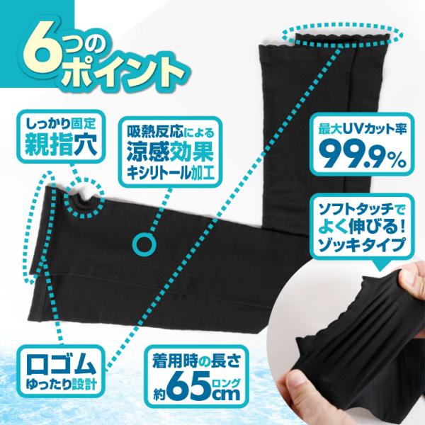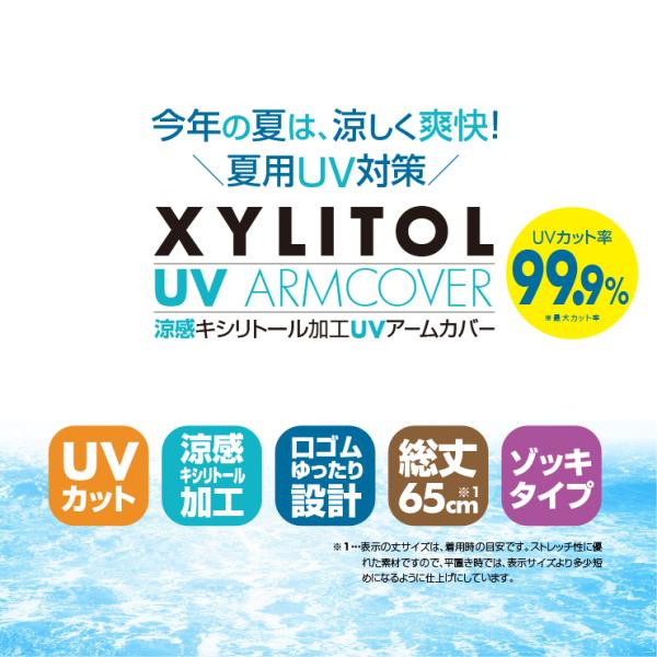 「最大UVカット率99.9%!爽快!涼感!キシリトール加工の冷感UVアームカバー 65cmロングタイプ」