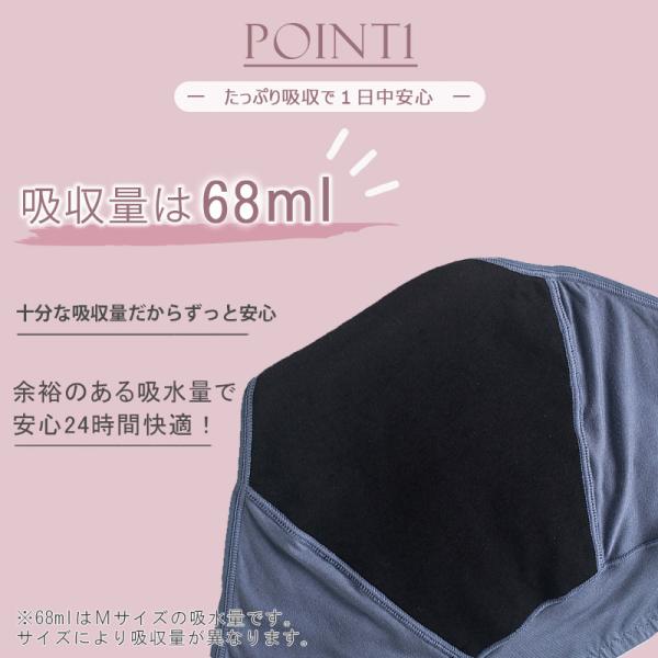 吸収量はなんとMサイズで68mlなので、特に多い2日目でもこれ1枚でOK!