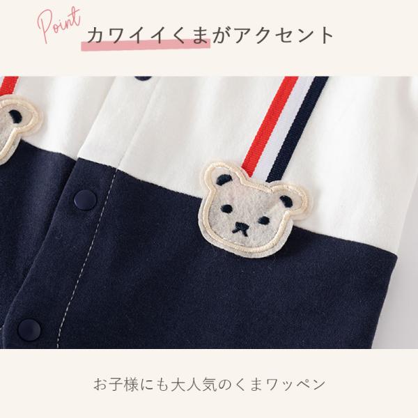 また下はスナップボタンになっており、おむつ替えやお着換えのことまで考えられたベビー服です。