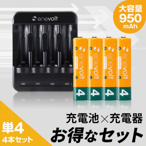 『累計販売数520万本』 充電池 単4 単四 セット 4本 950 エネボルト 充電器 ケース付 ニッケル水素対応 防災 USB 単3形 単4形 単三形 兼用 充電式 車中泊