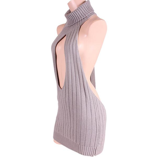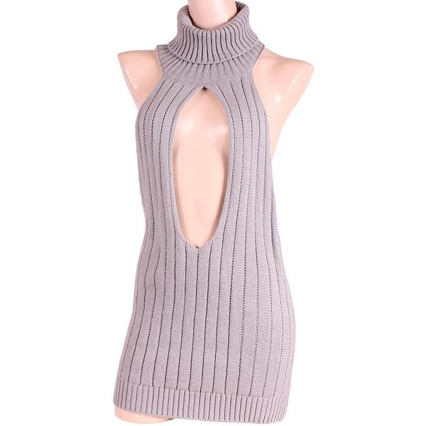 悩殺前開きセーター グレー セクシー コスプレ 宅コス ニット 可愛い エロい 大胆 ワンピース ルームウェア 部屋着 コスチューム 衣装 ハロウィン 仮装