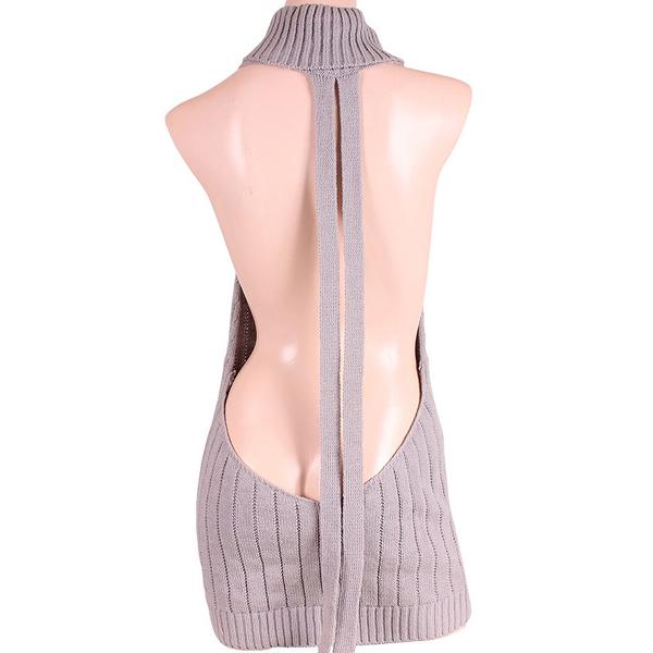 バックレス&前開き仕様の可愛いリボンニットセーター。ホルターネックデザインに、ヒップを覆うほどのダボっとした丈感が大人可愛い印象を与えます♪※こちらの商品は受注発注商品の為、ご注文から発送までに3、4営業日掛かる場合が御座います。