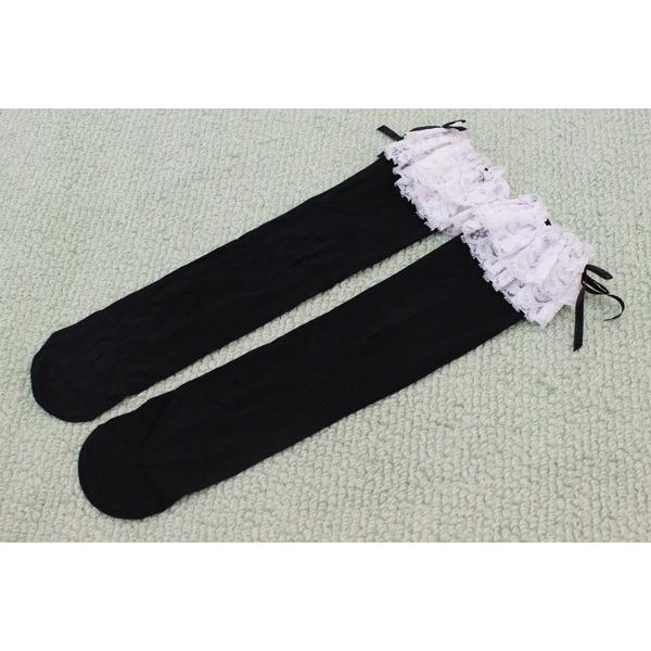 リボン付きレースハイソックス 黒 コスプレ小物 ソックス 靴下 アニメ アイドル ハロウィン 仮装 大人 コスチューム 衣装