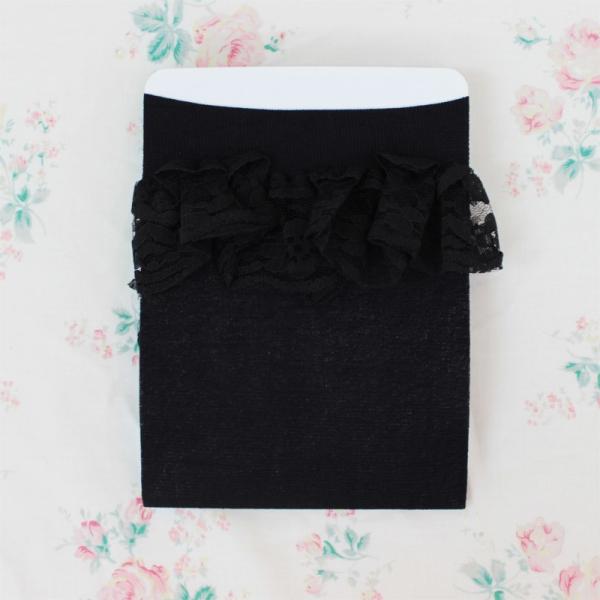 レース付きニーハイ 黒×黒 コスプレ小物 ソックス 靴下 アニメ アイドル ハロウィン 仮装 大人 コスチューム 衣装