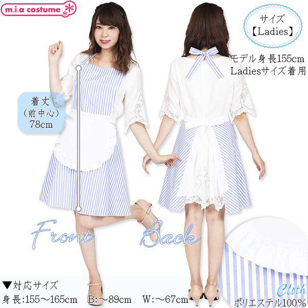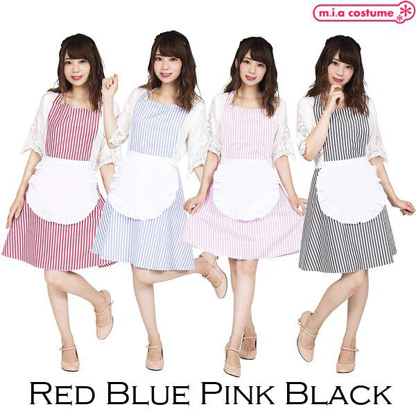 コスプレ メイド フリルストライプエプロン ブルー ブルー ウェイトレス 制服 可愛い 衣装 コスチューム ハロウィン 仮装 セクシー アキバ ゴスロリ