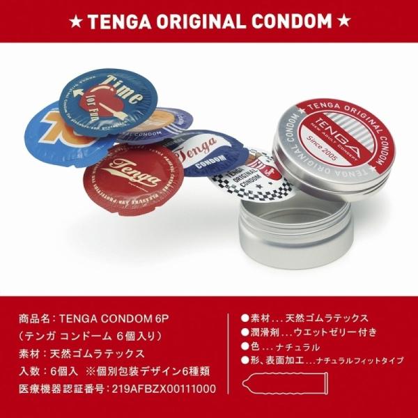 TENGA史上初!アメリカンな缶バッジ風デザインのオリジナルコンドーム「TENGA CONDOM」が登場。●携帯しやすいコンパクトなアルミ丸缶パッケージ入り●使うのが楽しみになるポップな6種の個包装●デザインはレトロ・アメリカン・レーシングバッジをイメージ●素材:天然ゴムラテックス●形状:ナチュラルフィットタイプ●カラー:ナチュラル●潤滑剤:ウェットゼリー付き。その日の気分に合わせて楽しめるデザインで、パートナーとのとっておきの時間がさらにハッピーに♪「性を明るく正しく楽しむ」をモットーにしたTENGAらしさ溢れるコンドームです。