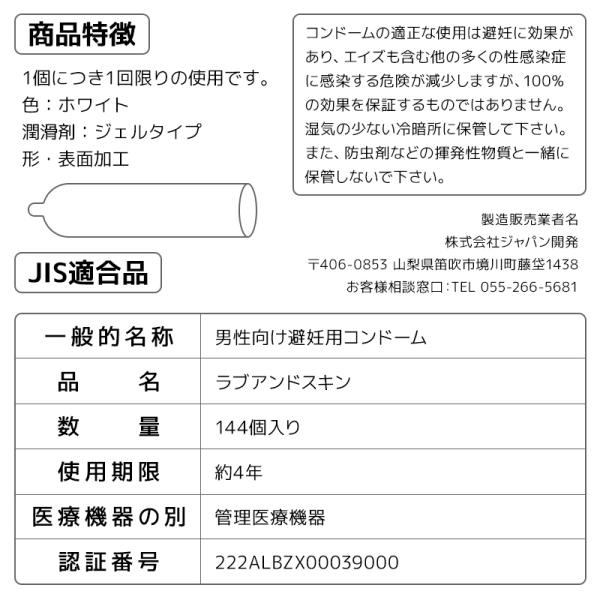 中身がバレない包装 コンドーム 144個入り 福袋 大容量 まとめ買い 業務用 ラブアンドスキン 避妊具 二重梱包 レギュラーサイズ スタンダード 普通サイズ